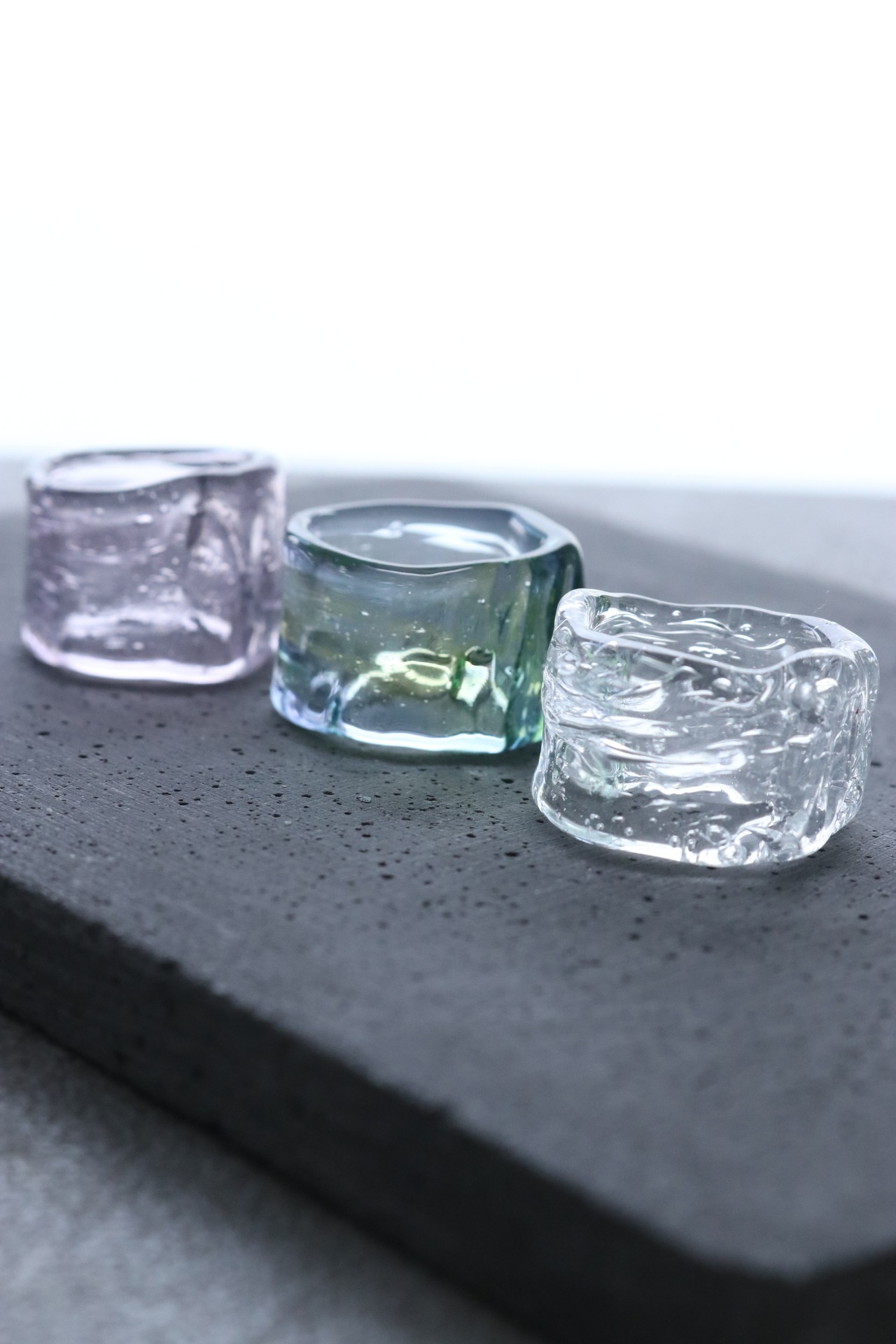 ガラスの持つ緊張感と、指に沿うやわらかさを両立させました