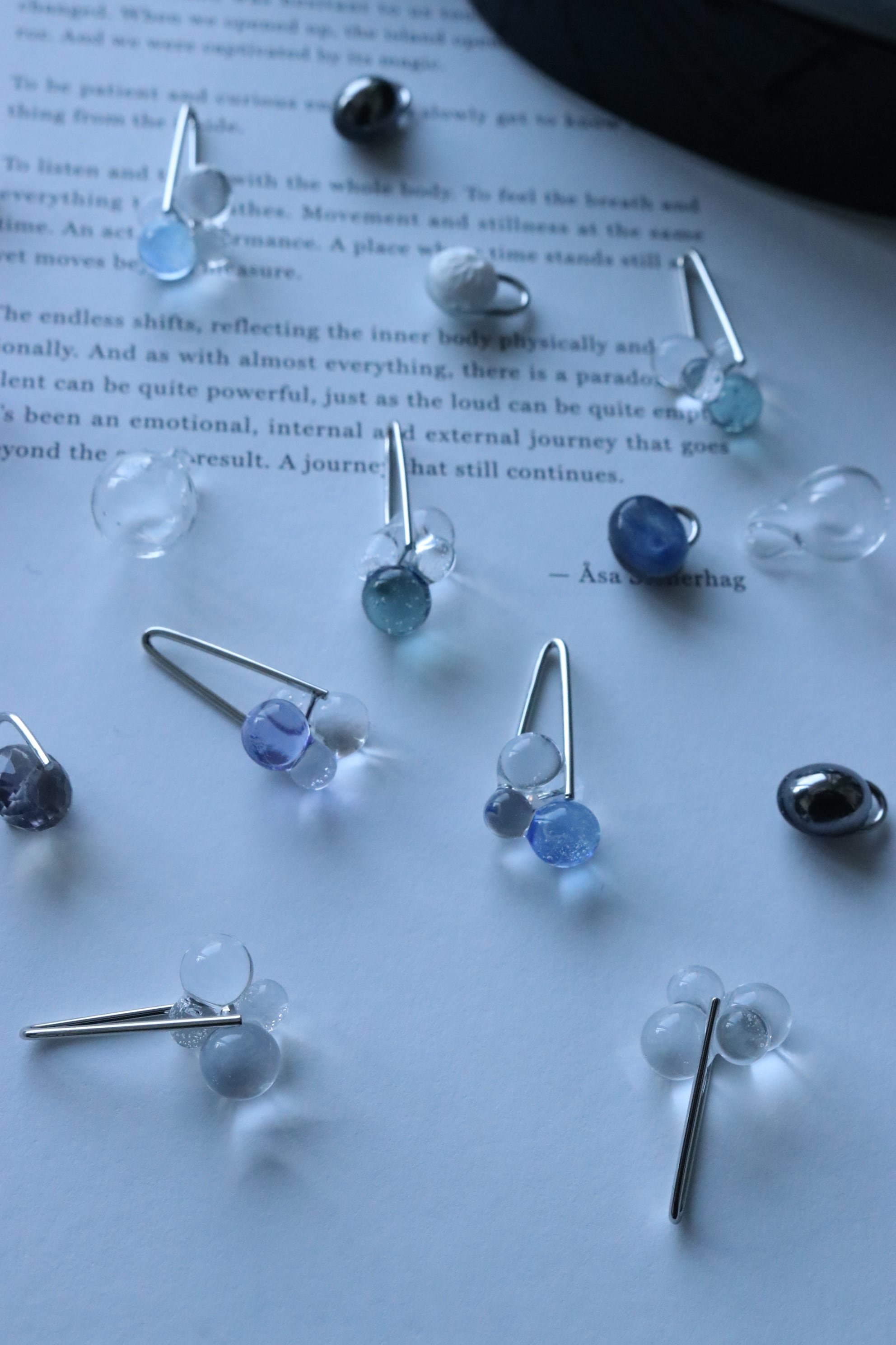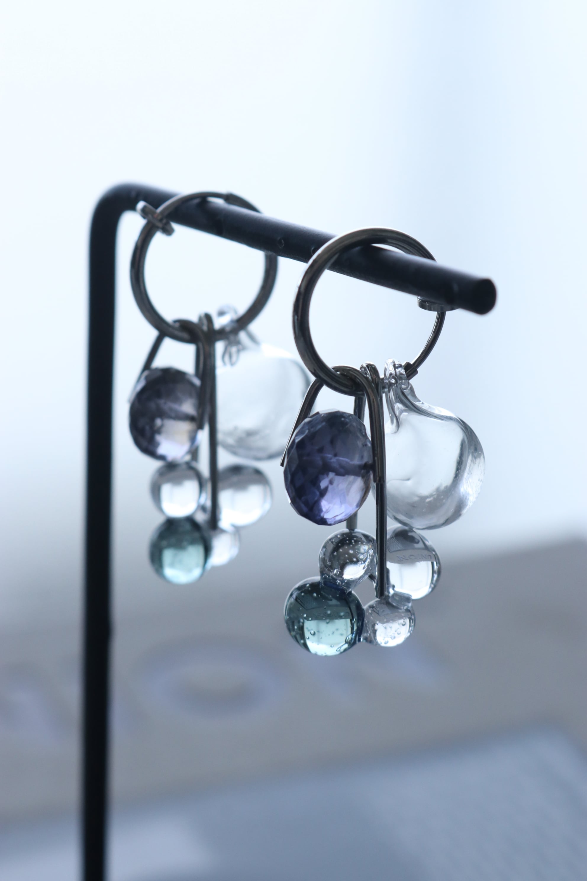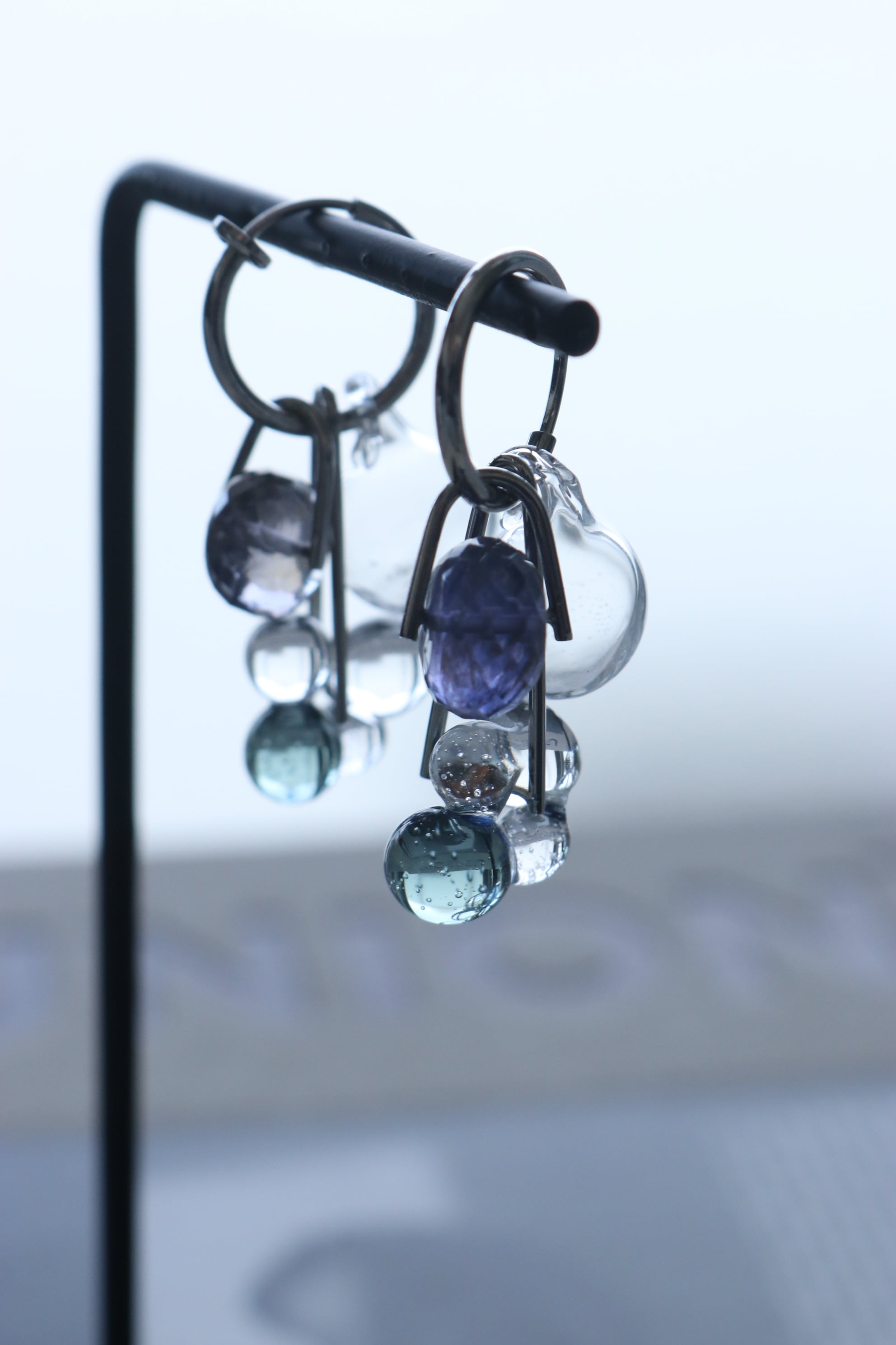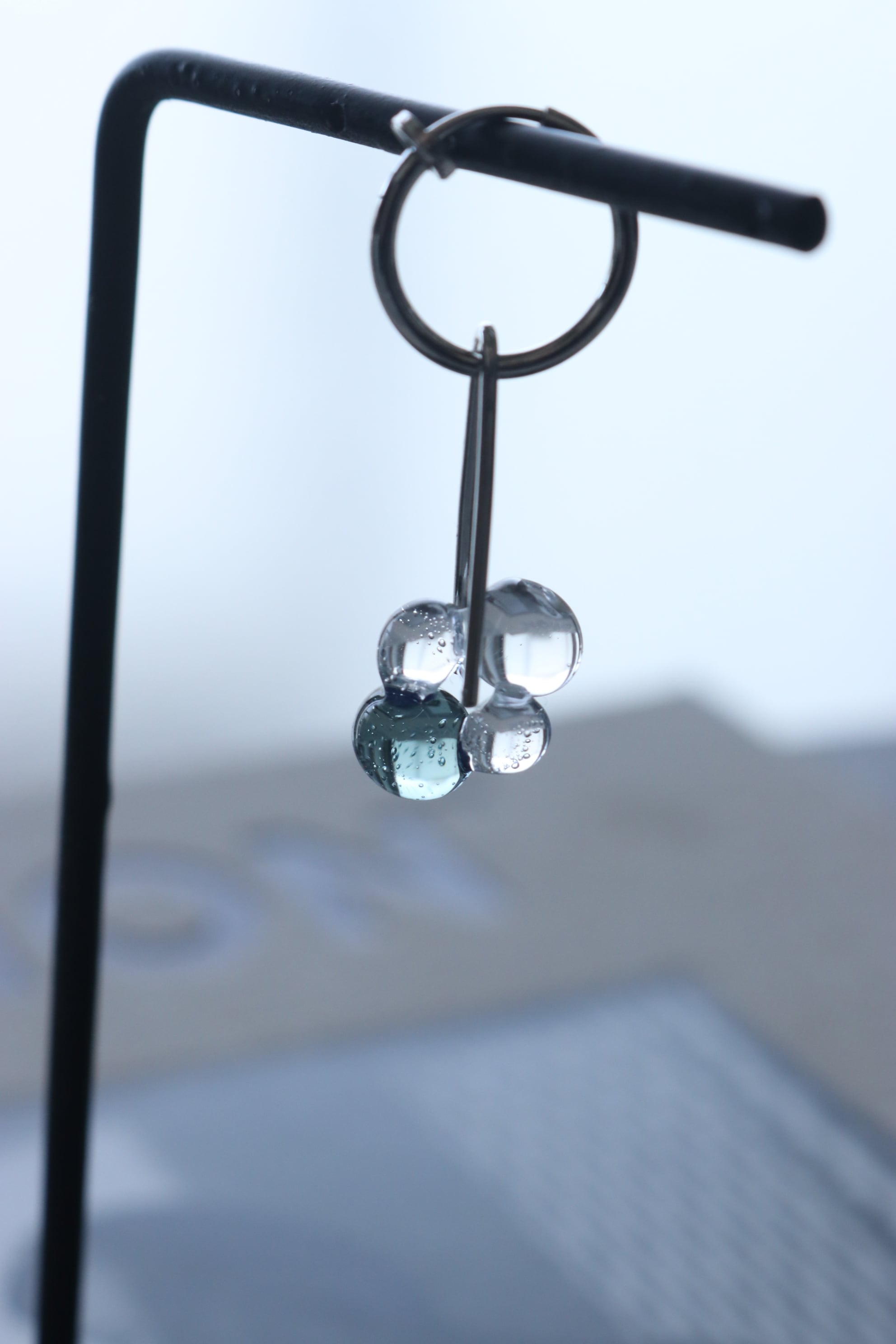 球体で 不規則なフープに焼き上げた ガラス玉が