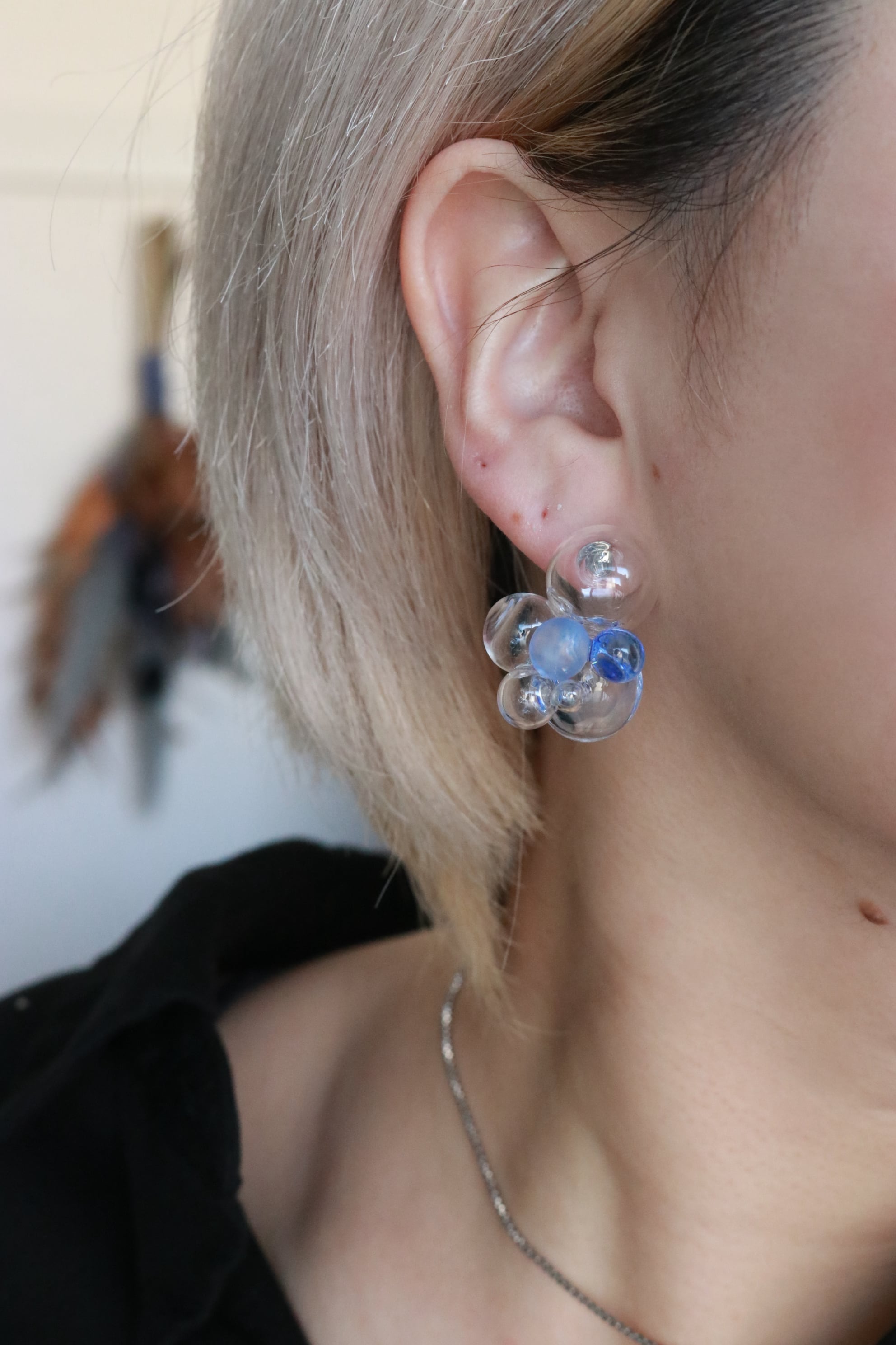 手染めビーズを 吹きガラスと組み合わせておりましたが
