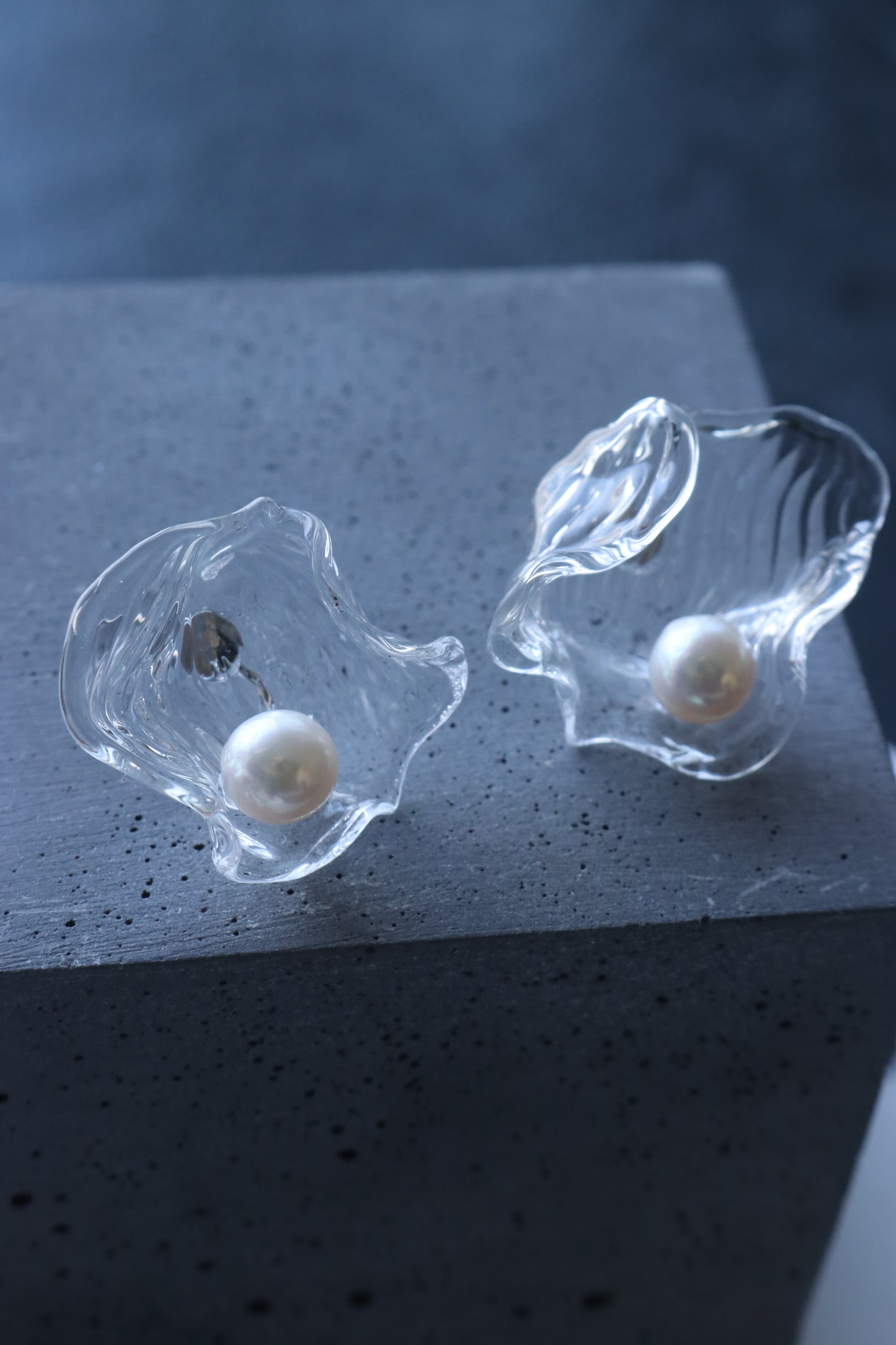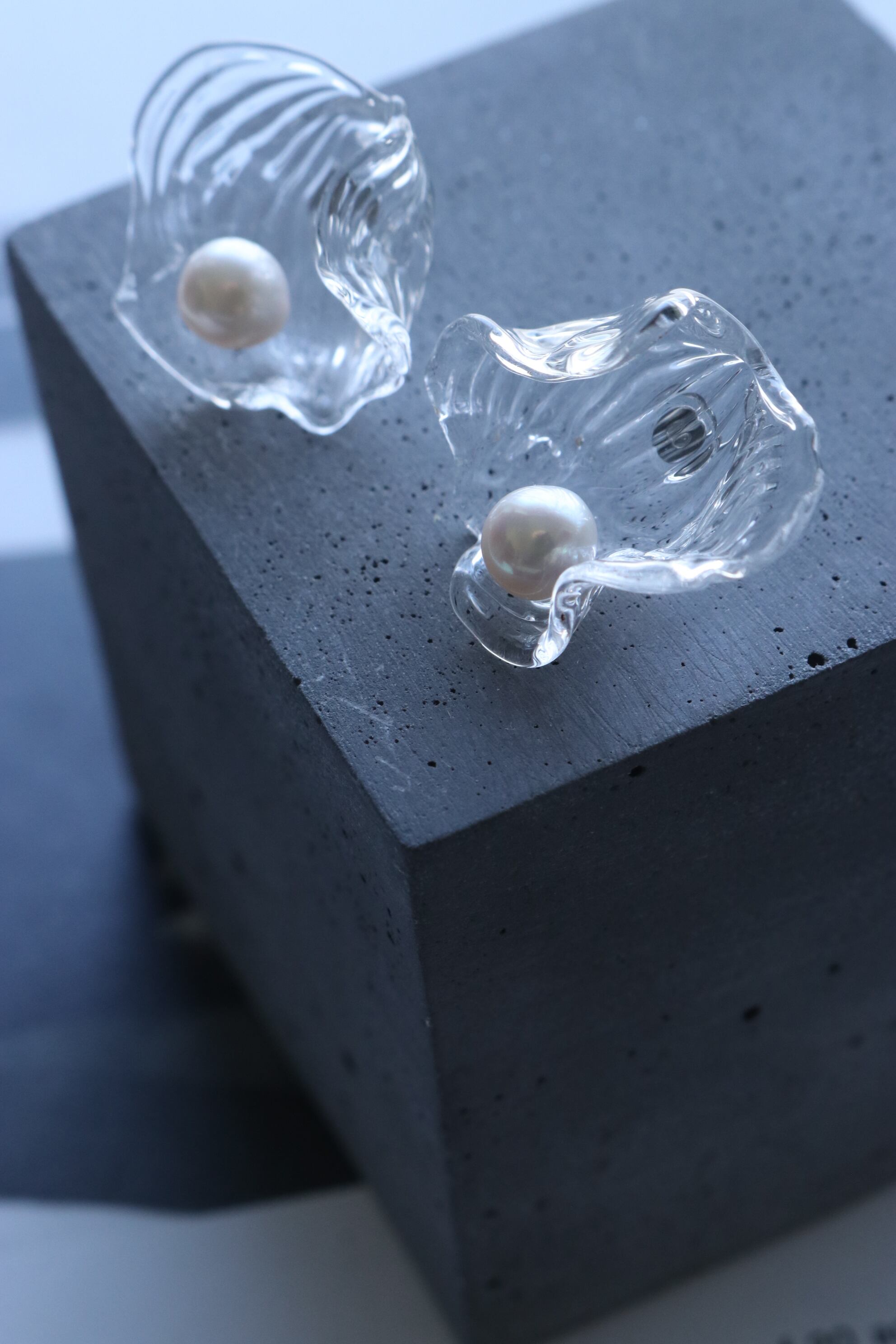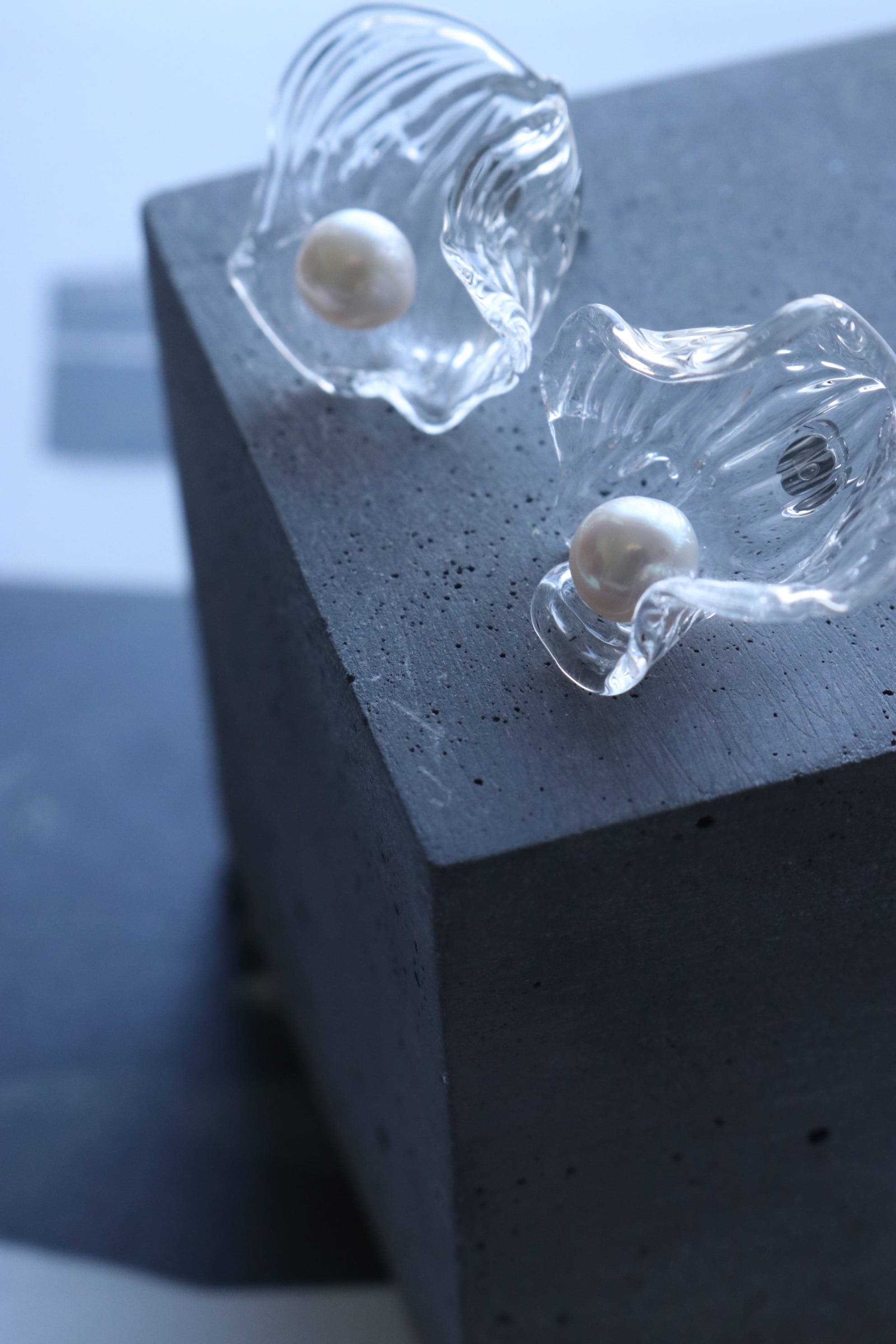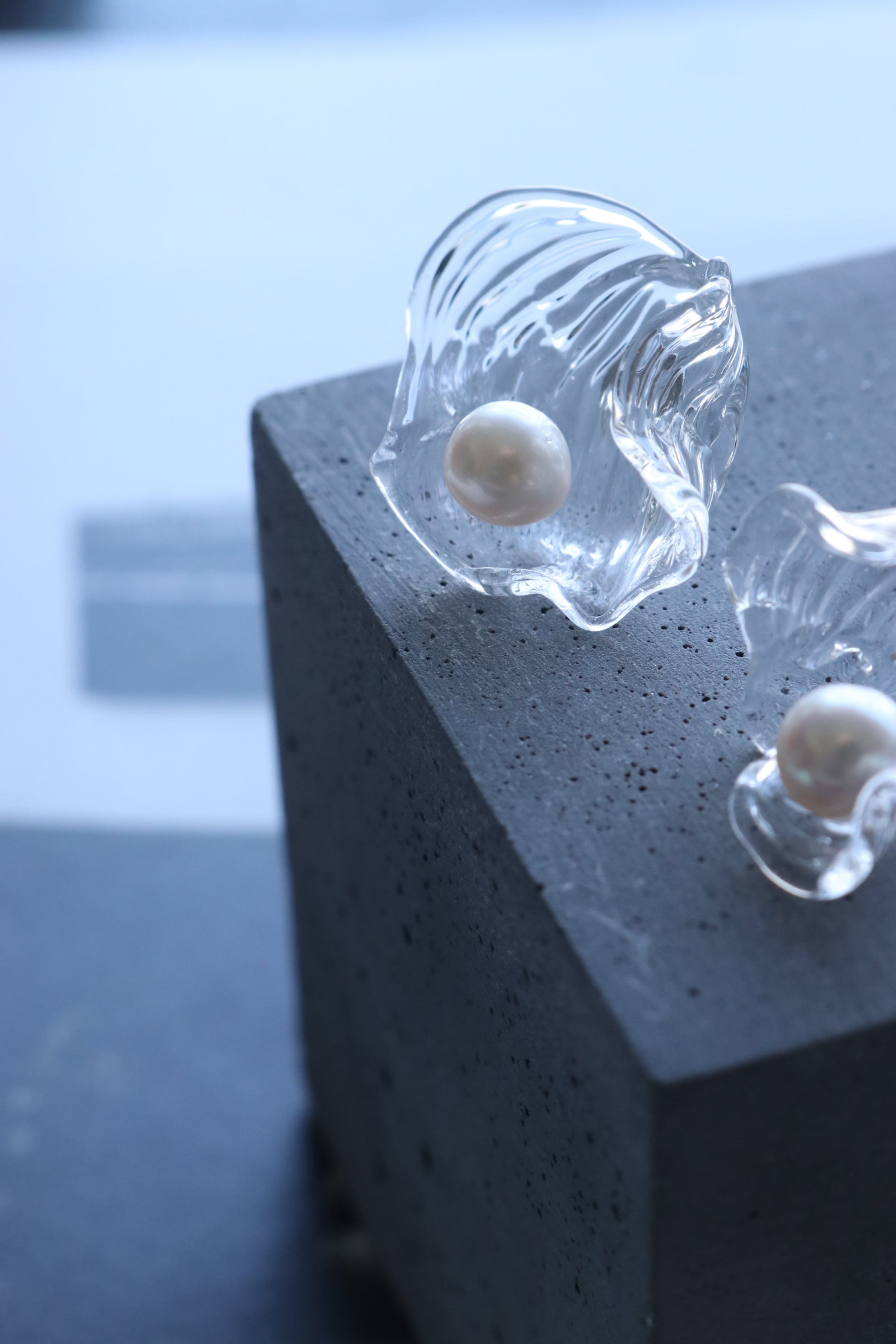 約1年ぶりに用いたアコヤ真珠のバロックパールを 透明なガラスの内側にそっと収めました