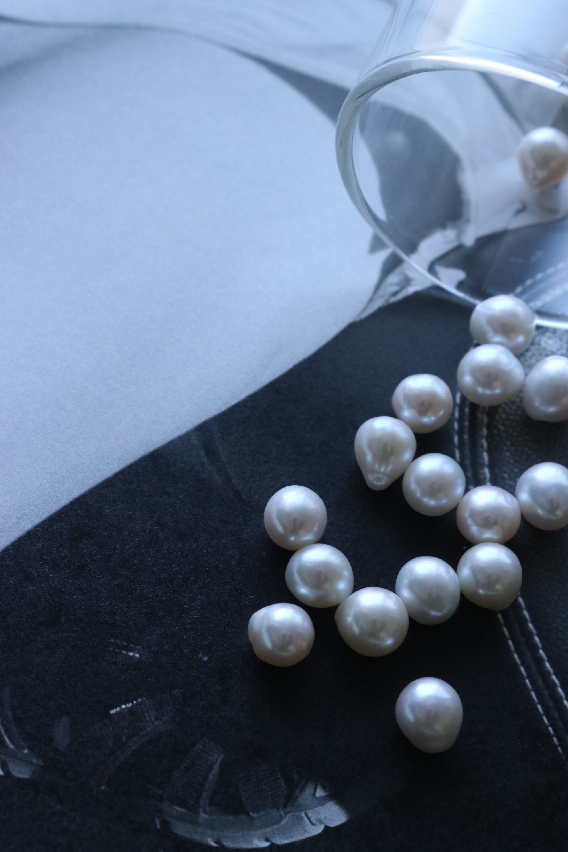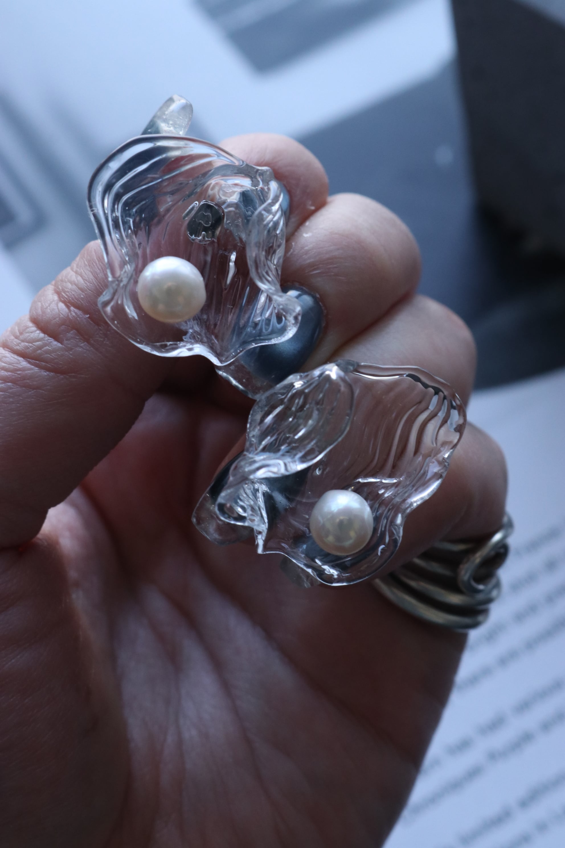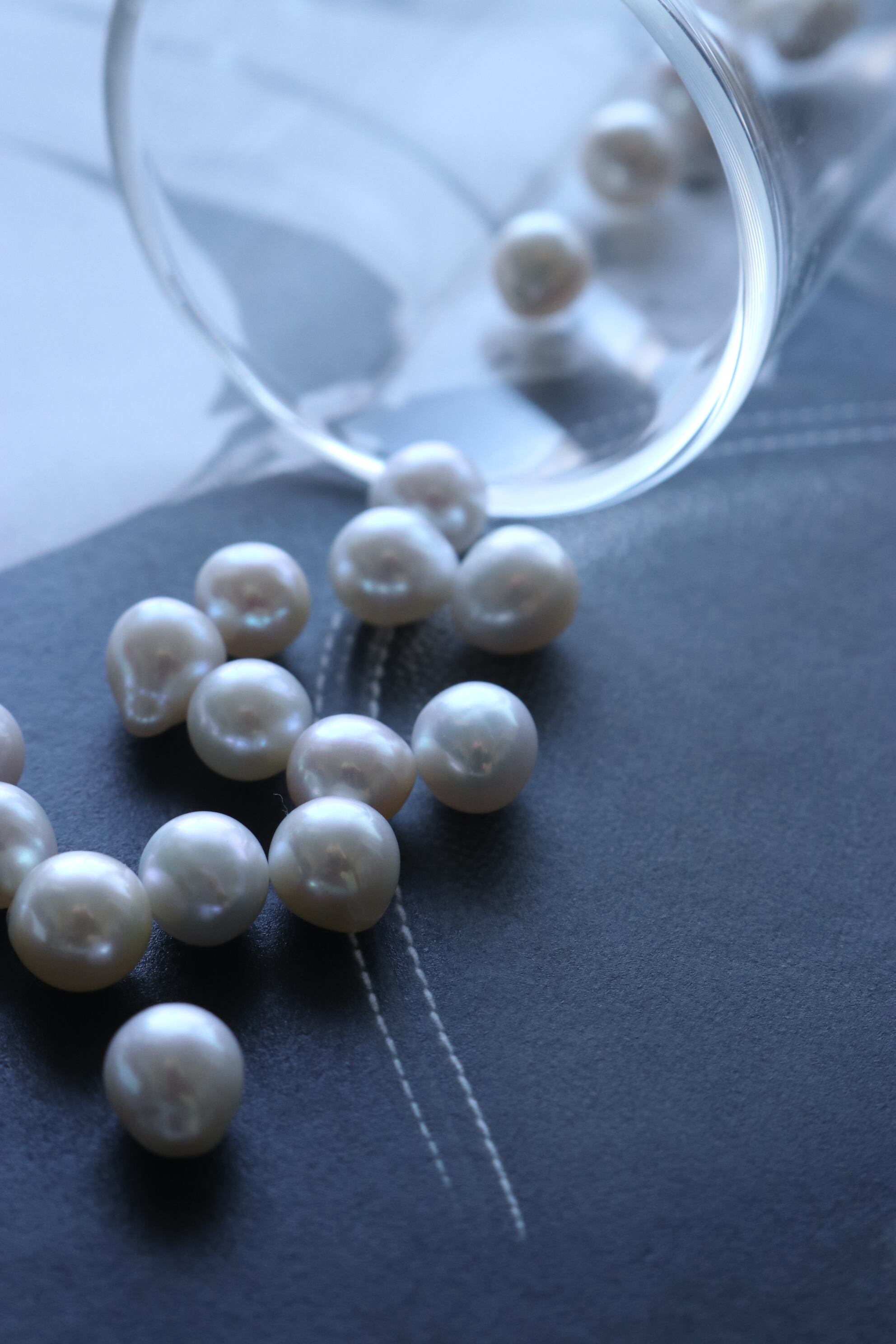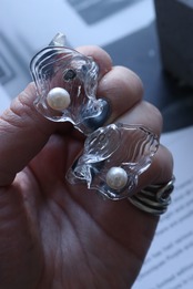 約1年ぶりに用いたアコヤ真珠のバロックパールを 透明なガラスの内側にそっと収めました