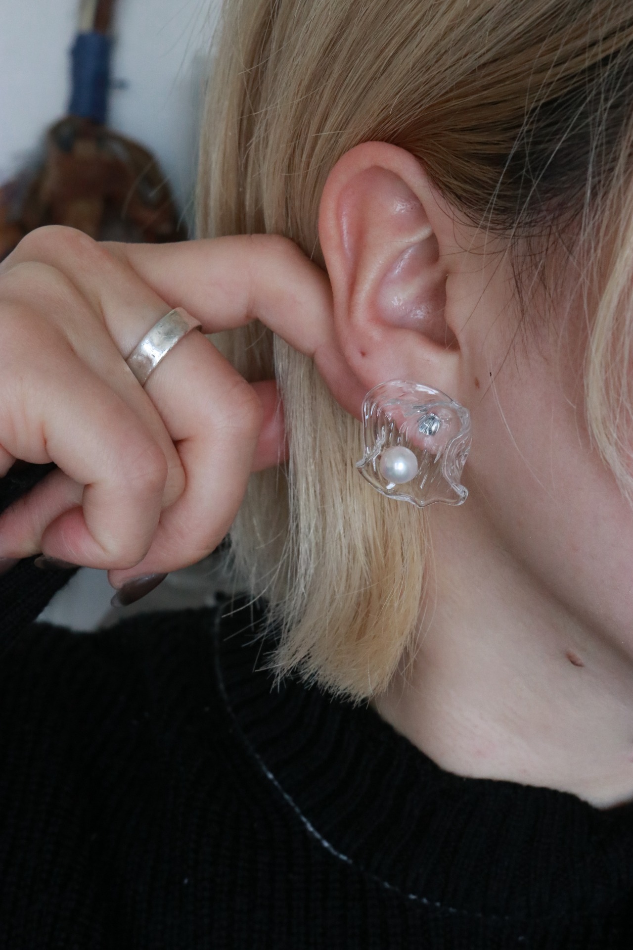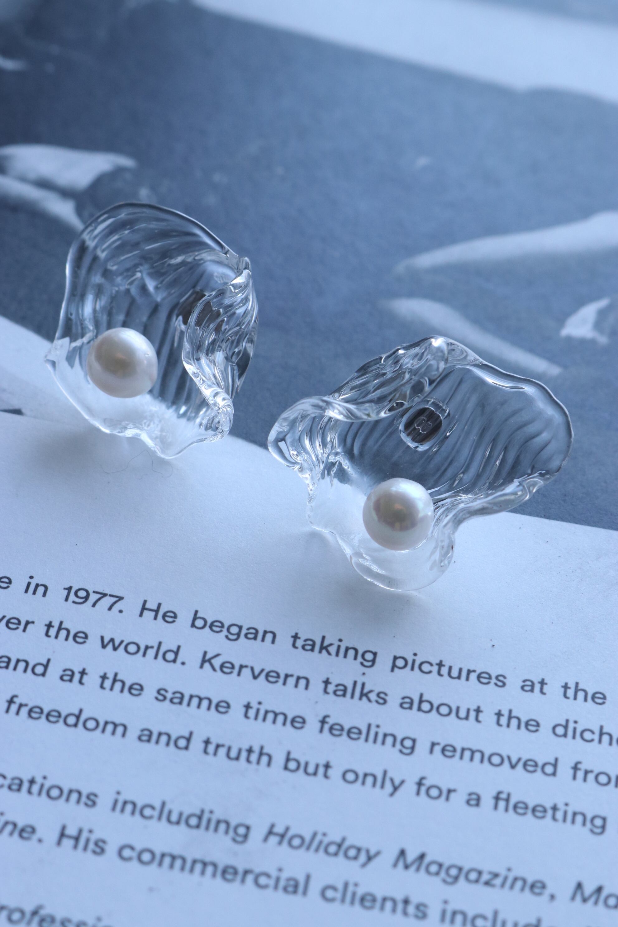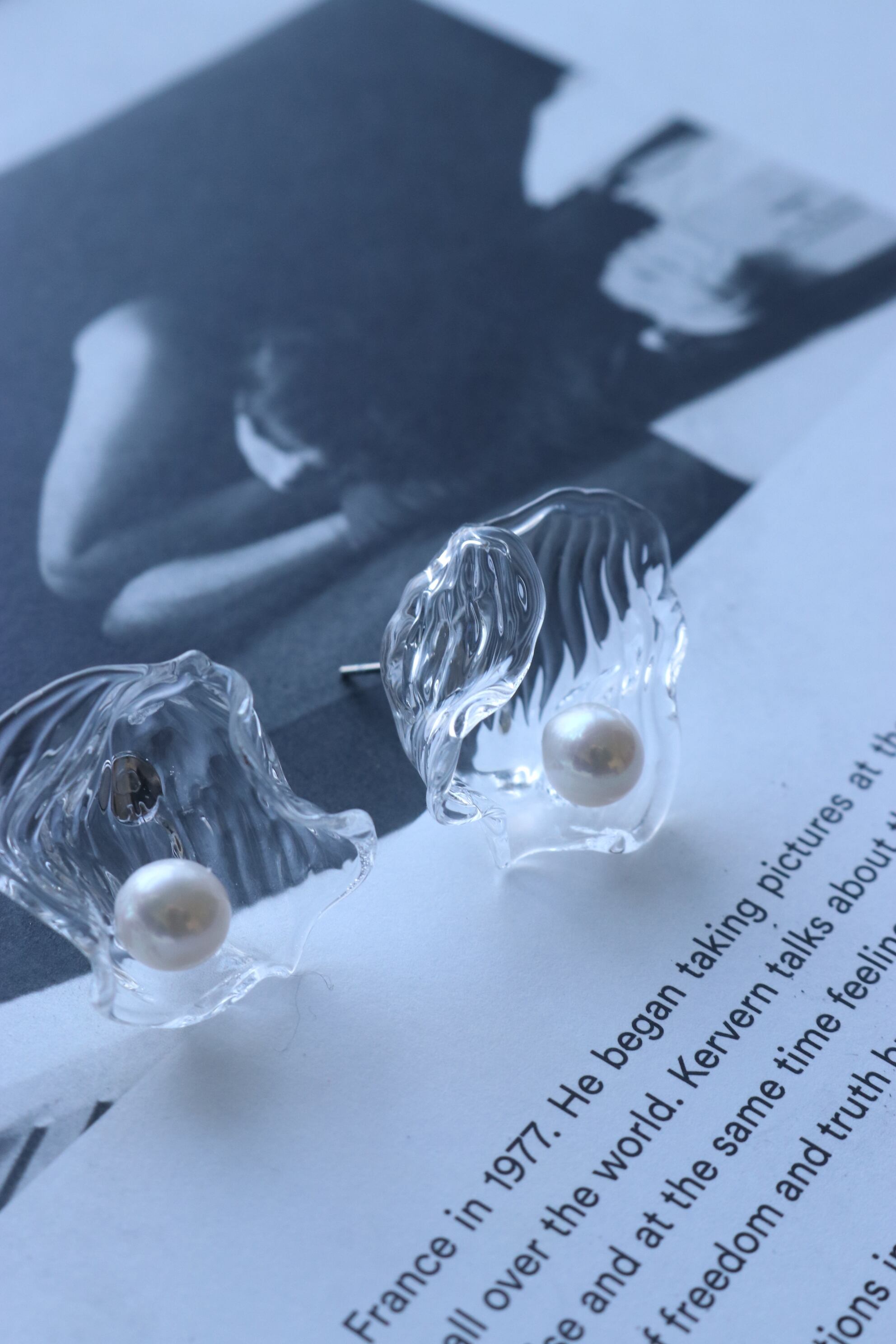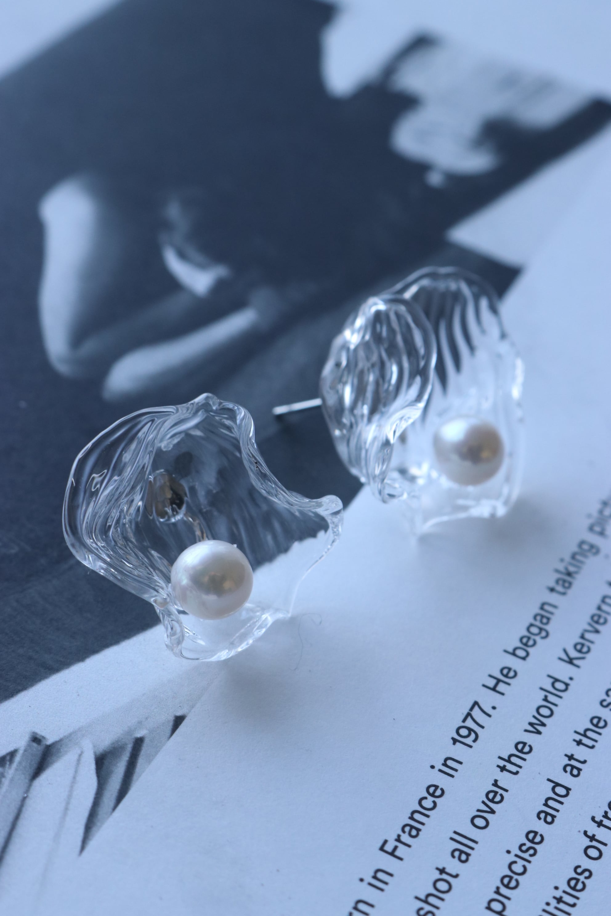 約1年ぶりに用いたアコヤ真珠のバロックパールを 透明なガラスの内側にそっと収めました