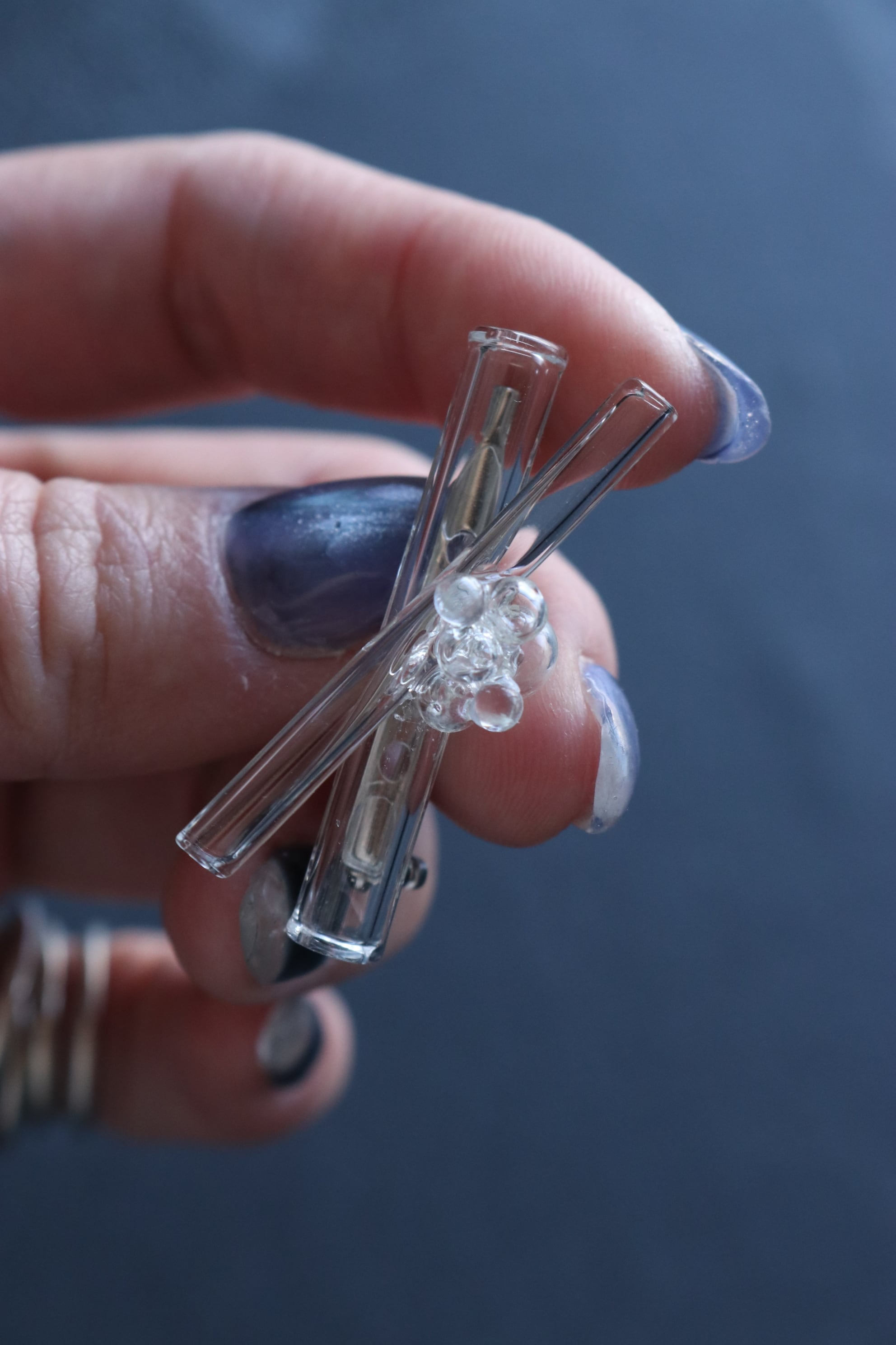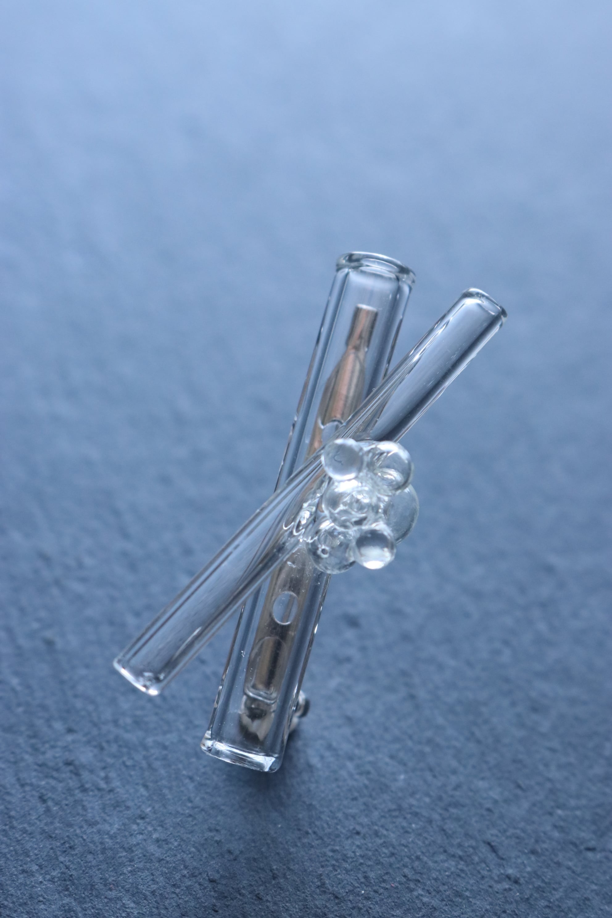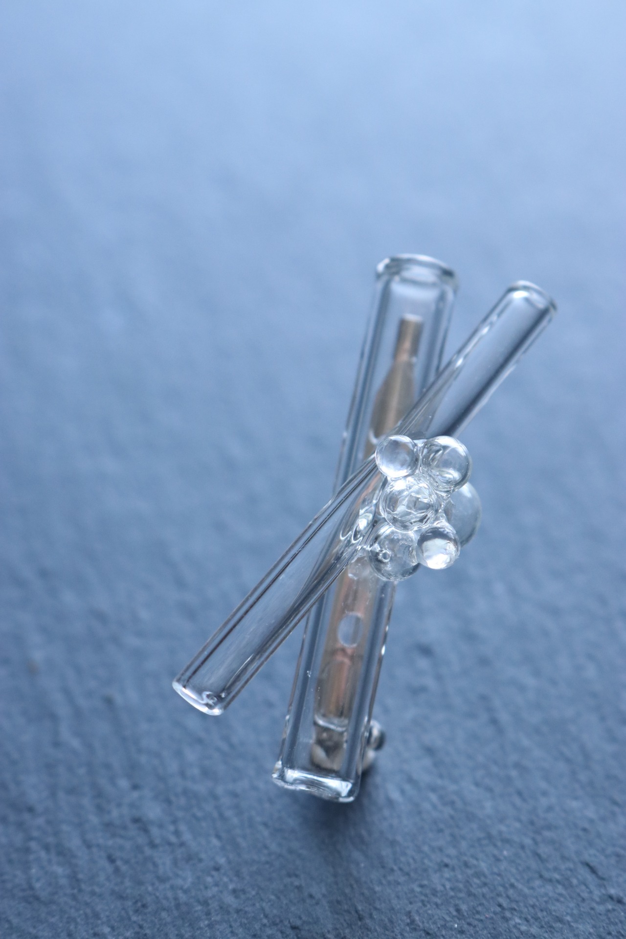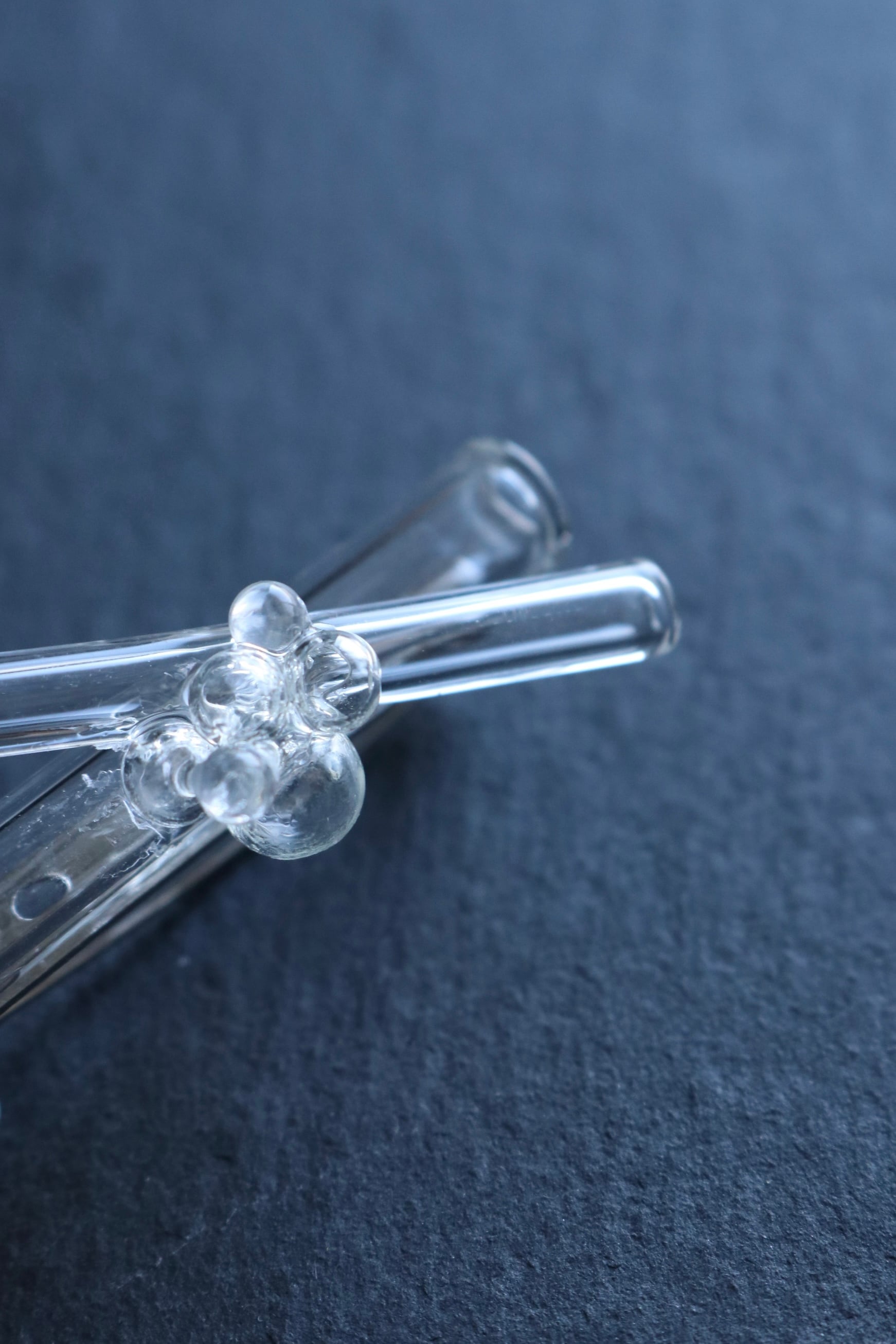 太さの異なるガラスをそっと重ね、ひとつに