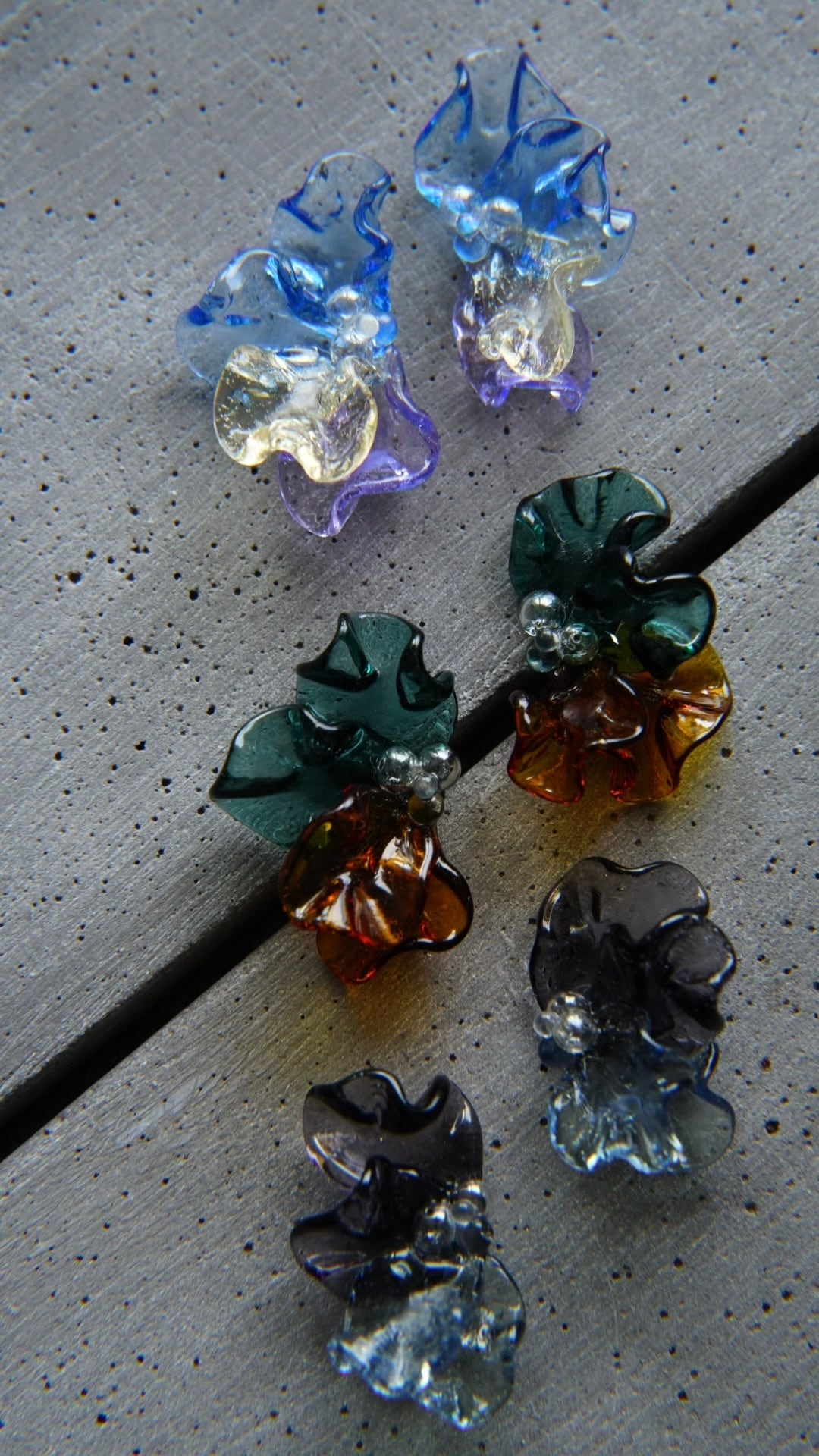 ビオラをモチーフにした ガラスのアクセサリー