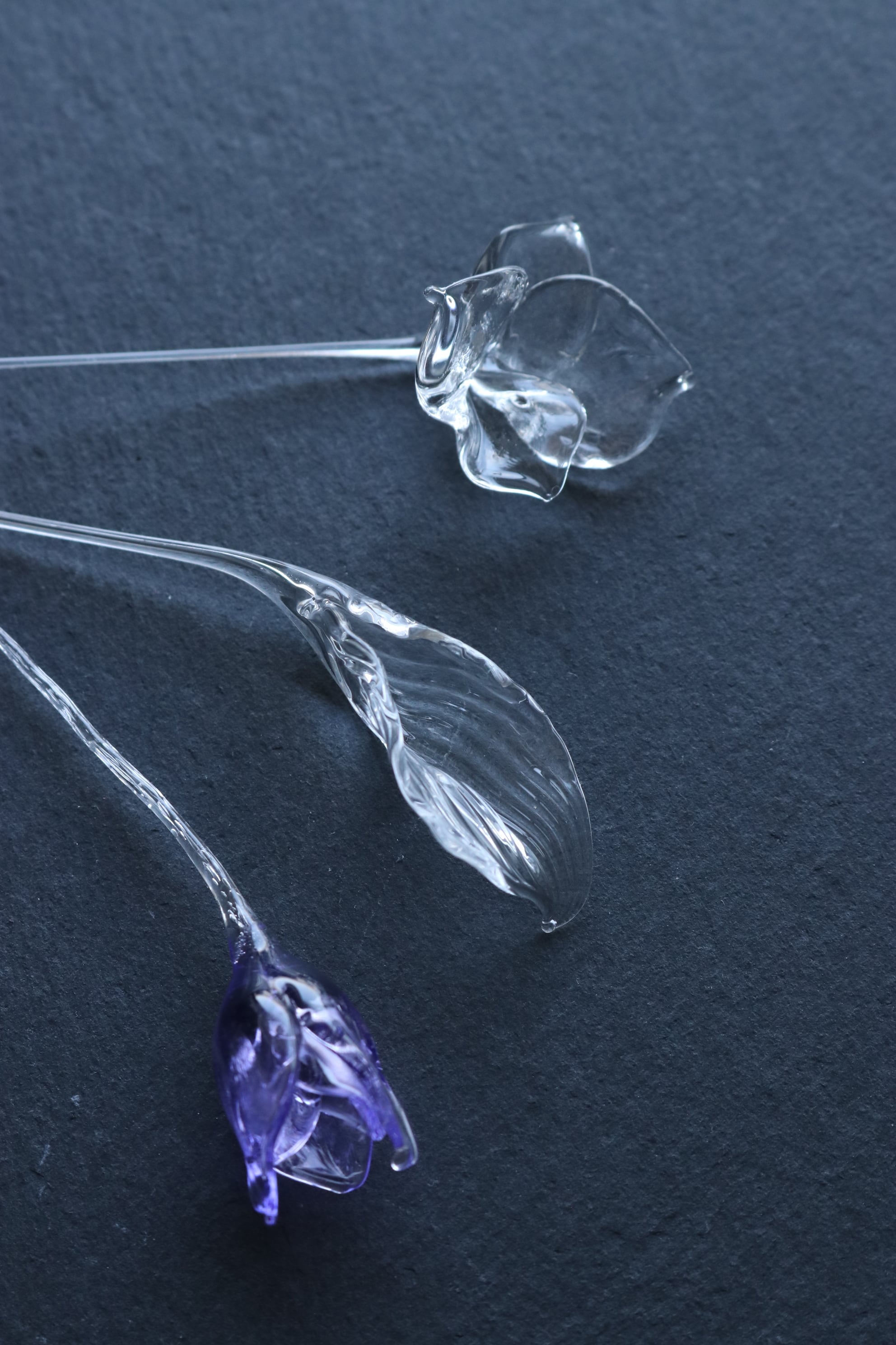 ご注文の際にはガラスの花が1輪セットになって付属していますが