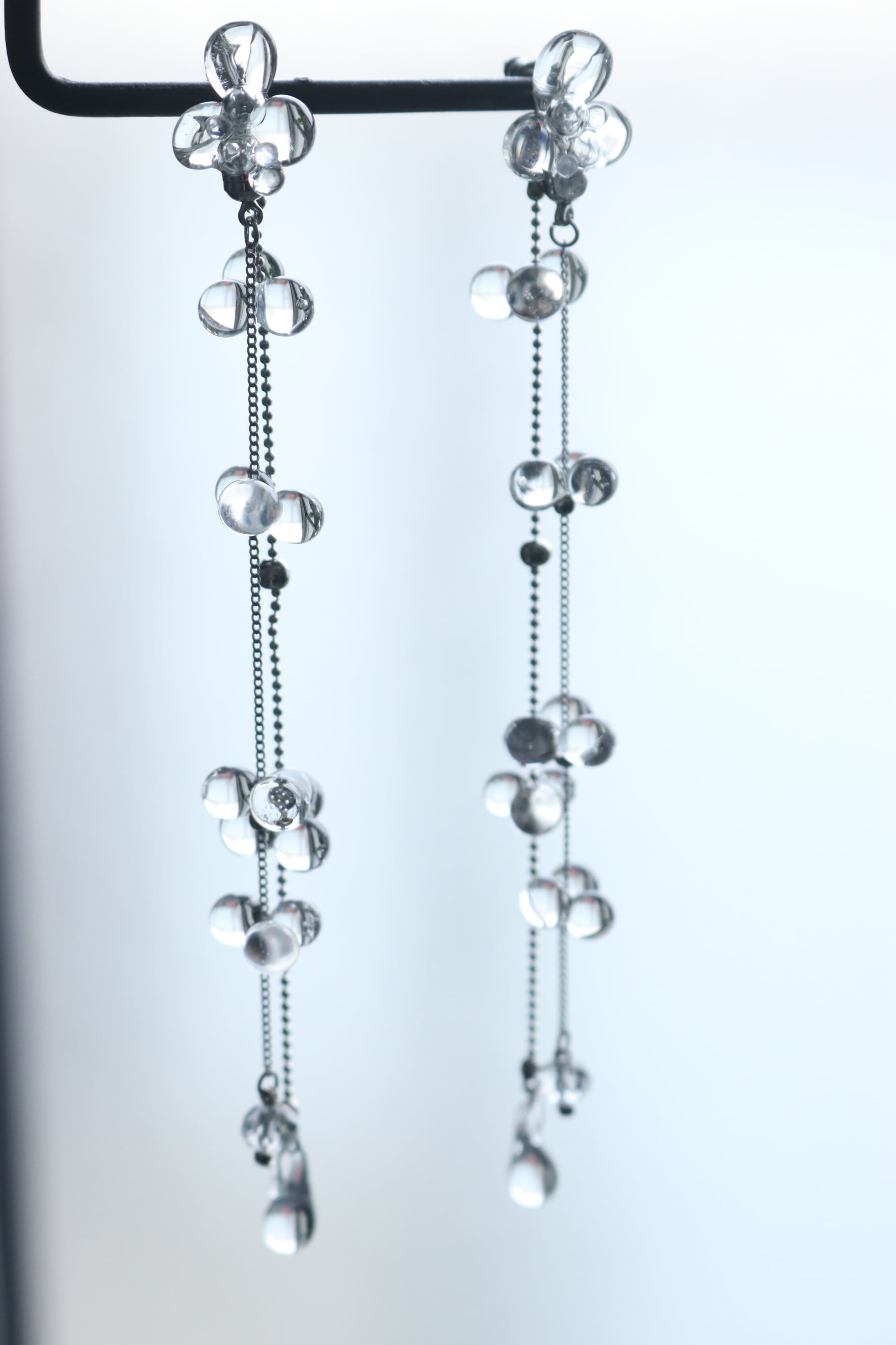 華奢なチェーンに紡いだガラスが静かに揺れ 上品に輝きます